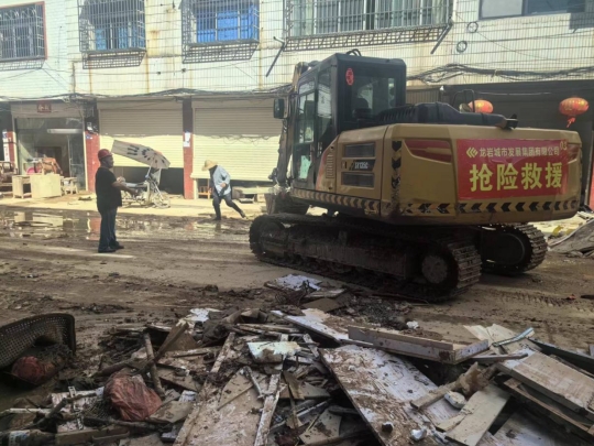6月20日,市政集團搶險救災突擊隊到達武平巖前鎮?,F場一片狼藉,不僅整個片區斷水斷電,通廣街、環城路等主要街道被淤泥及各類建筑垃圾覆蓋,救援人員的食宿也沒辦法得到保證。
